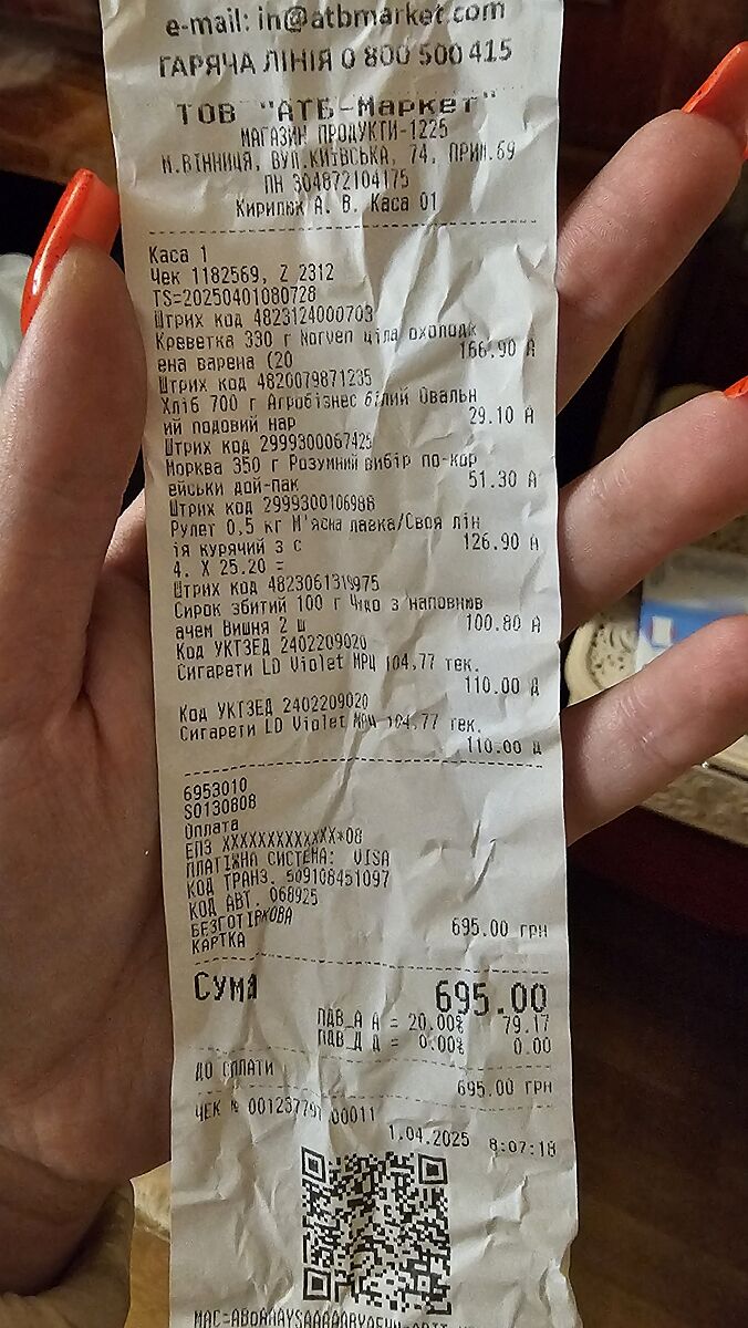 Це Ви жалітися з фото чека прийшли? Чи щоб Вас поскубли за цигарки?
