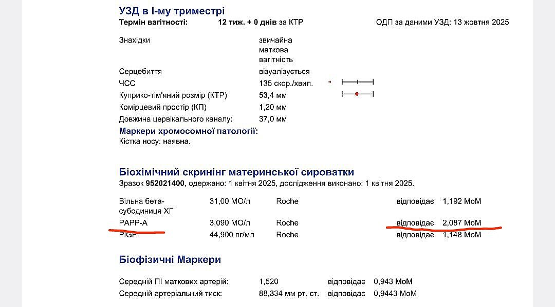Помогите расшифровать результаты 1го скрининга.