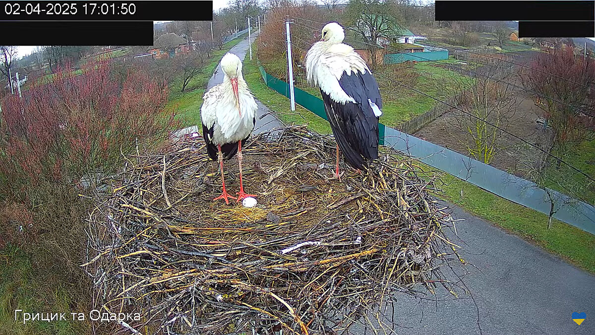 У лелек Грицика і Одарки вже є перше яйце. Сьогодні вночі чекаємо друге