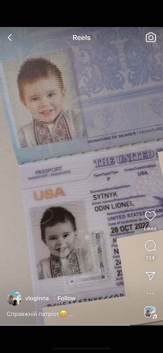 Жіночка показує американський паспорт дитини під гімн України та у вишиванці. І підписує - патріот.