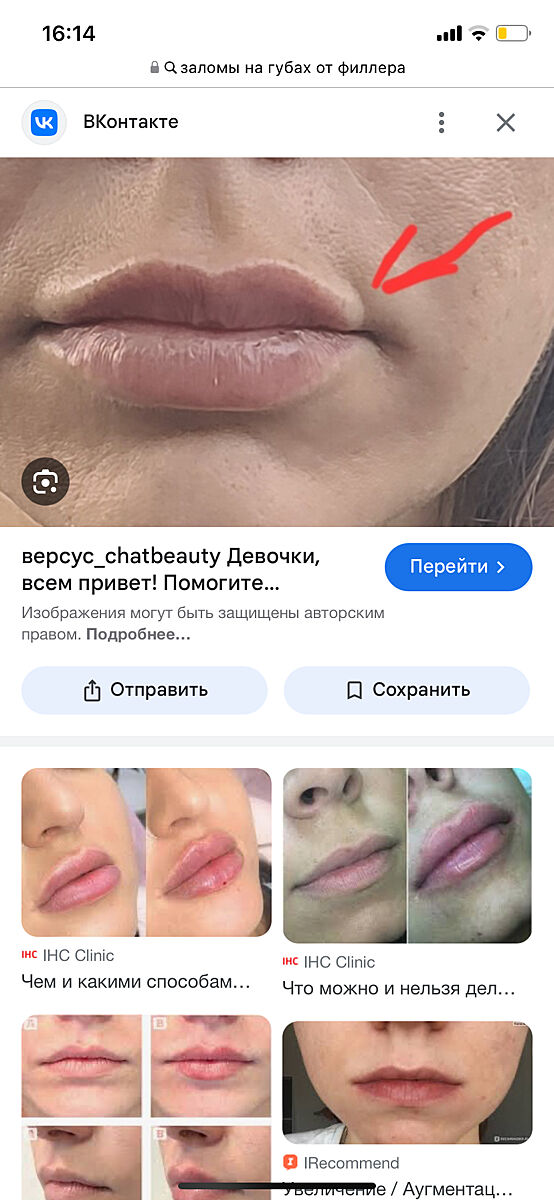 Через год появились заломы от гиалуронки в губы, хотя я колола один раз и всего 0,5мл. Это самый минимум. Никогда не хотела вареники, всегда хотела естественную форму, которую я и получила, никто не замечает, что губы сделаны. Анализируя слова многих косметологов пришла к выводу, что у меня такое строение губ, поэтому я и получила заломы спустя время. Они видны при искусственном освещении только. И видны только мне так как знаю какое мое лицо было до инъекции. Чужие люди не замечают этого.