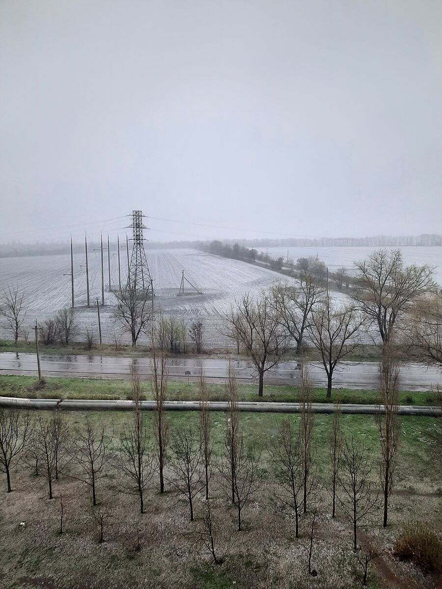 Випав сніг, -2. Нарциси всьо. Абрикоси буде видно чи змерзли, коли листя проклюнеться