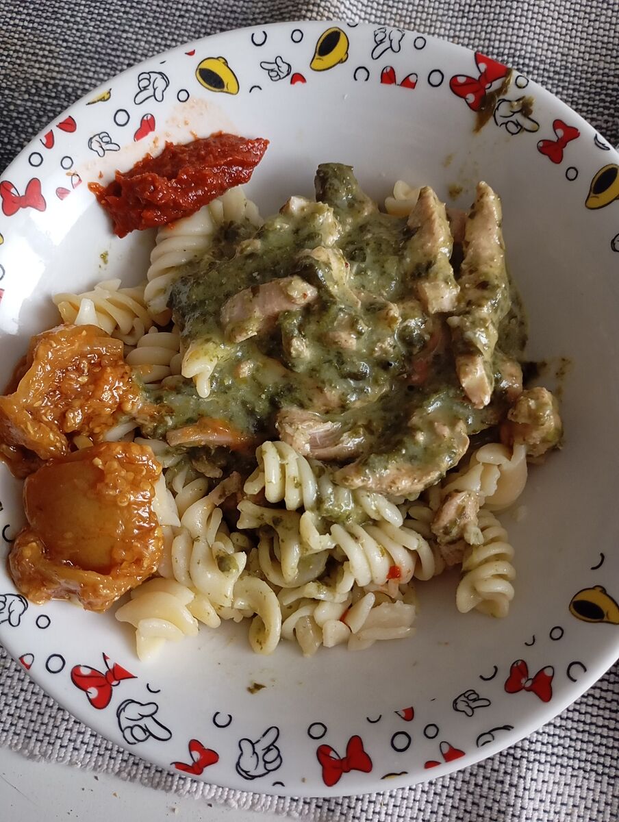 Та знаю, что выглядит ужасно, и макароны не люблю, но куриное филе в сливочно шпинатом соусе песня