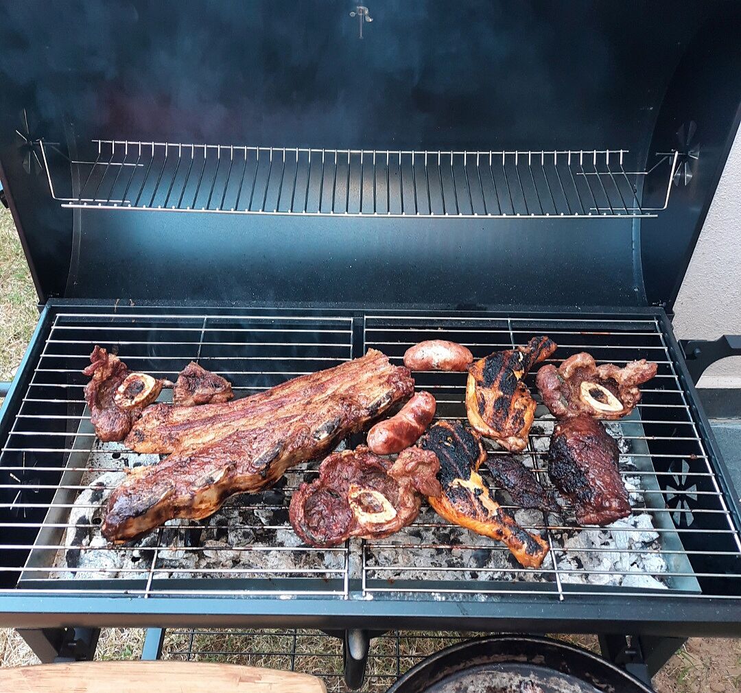 Картопляне пюре, кебаби з баранячого фаршу у мультипічці, салат з помідорів і огірків зі сметаною