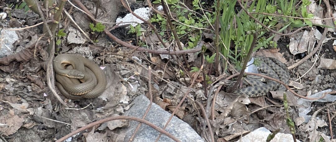 Почали приповзати змії (по фото полоз і водяний вуж)