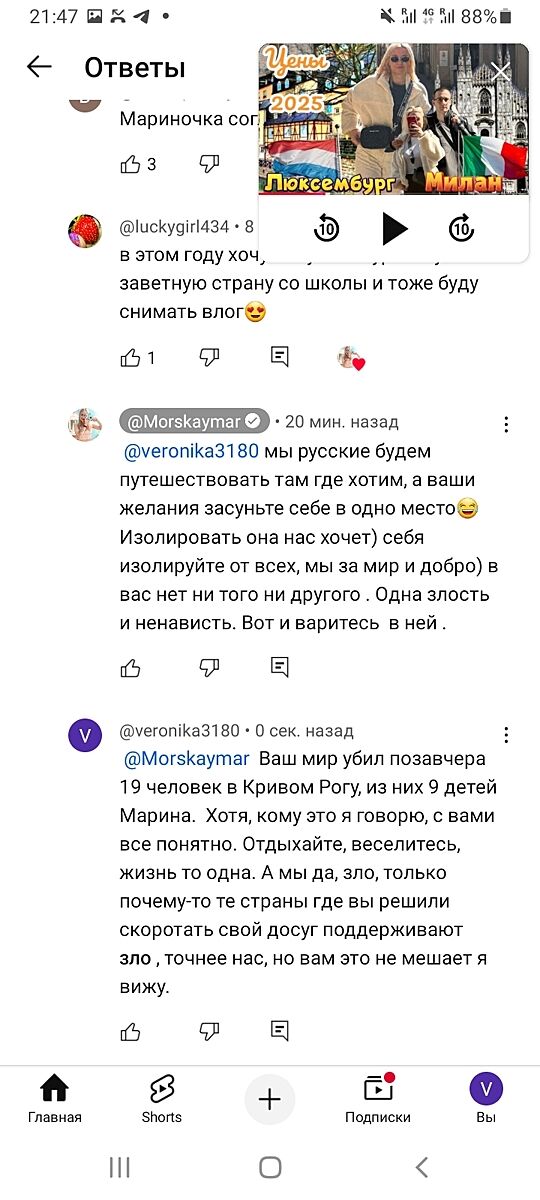 Там только русачи пишут, и все хорошее, она читает все, думает это я тупая. Я реально думала что молчит, значит боится, а она откровенно против нас..