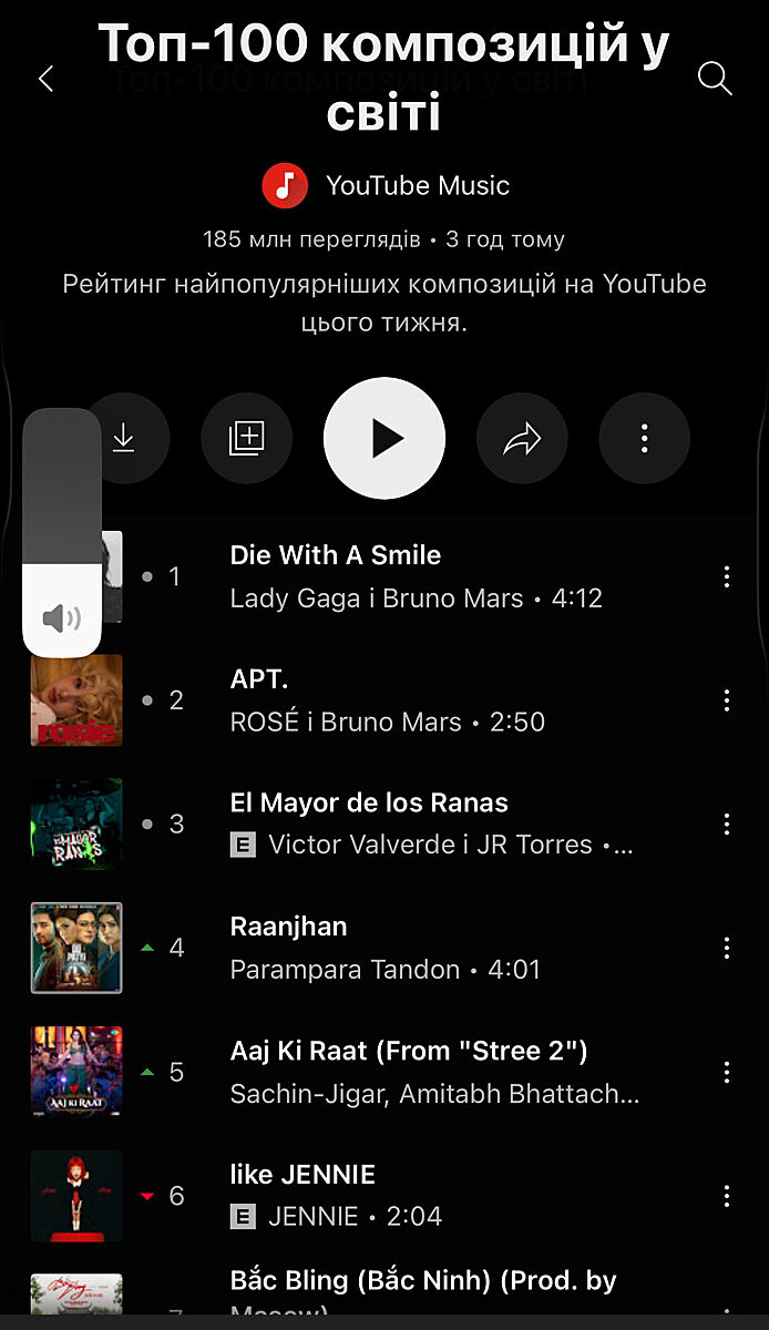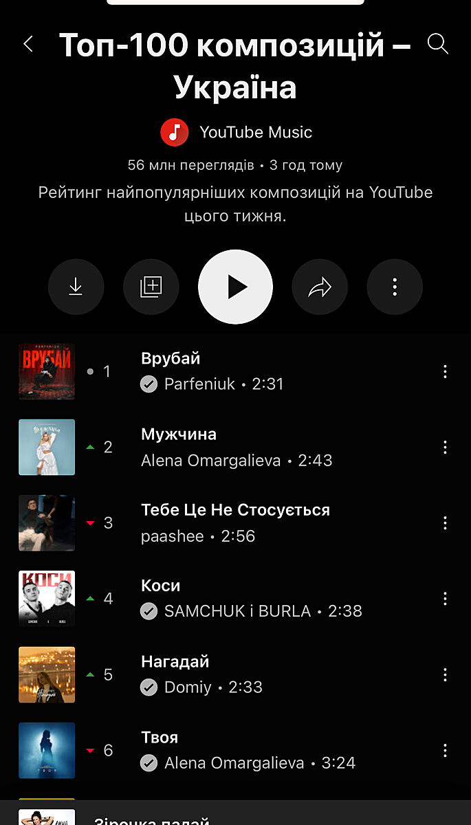Слухаю в spotify. Там цієї пісні нема в топі, але на перших місцях теж рашкінскі висять