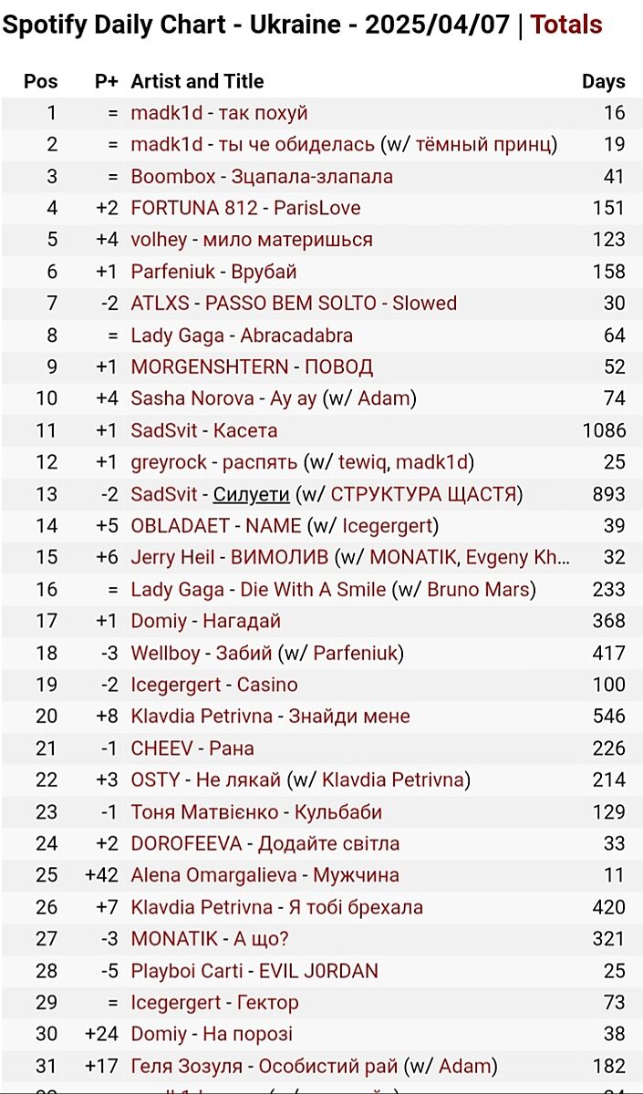 Я теж не чула про цю пісню. Після теми Автора зайшла до Apple Music і таки вона там на 1 місці