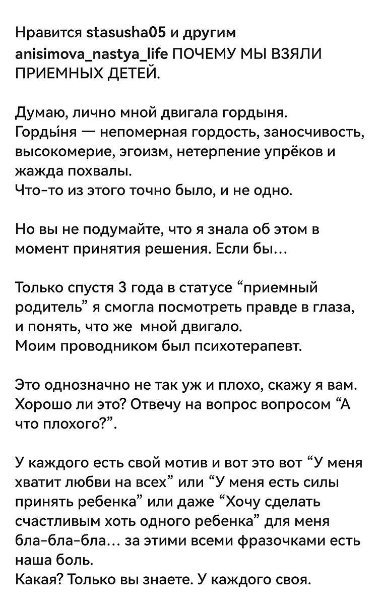 Если что, в детском доме давно прекрасное финансирование и дети едят норму мяса (а не сколько хочешь естественно) У меня муж может есть только мясо, гречку он не любит, суп тоже. Ну сорян) Это обычный детский эгоизм. В случае Анисимовой, у нее было трое детей, она взяла троих! потом ещё родила одну. Естественно, что она выдохлась. Выбираю себя это ее идея была с самого раннего)) Только в таких случаях чужих детей вообще не берут и в бога не играют.