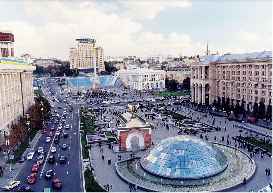 В 2001 году началась реконструкция Майдана, власти решили его осовременить и сделать «более европейским». Не такие уж старые и достаточно эстетичные фонтаны убрали во имя строительства под площадью огромного торгового центра Глобус. От главного фонтана отказались, и на месте «Рулетки» появилась прозрачная полусфера — часть импровизированного глобуса. На остальной территории установили четыре прозрачные пирамиды, а в квадрат между ними поместили шесть небольших фонтанов в два ряда.’
