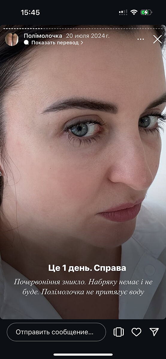 Раз робила, у мене немає дуже видимого провисання овалу, трішки помітно. До неї 2 рази був смас, після - морфеус. То , якщо порівняти, -полімолочна дала найкращий результат. Навіть не знала , що її під очі рекомендують, прайс був за цілу ампулу , на мою думку, то забагато під очі.