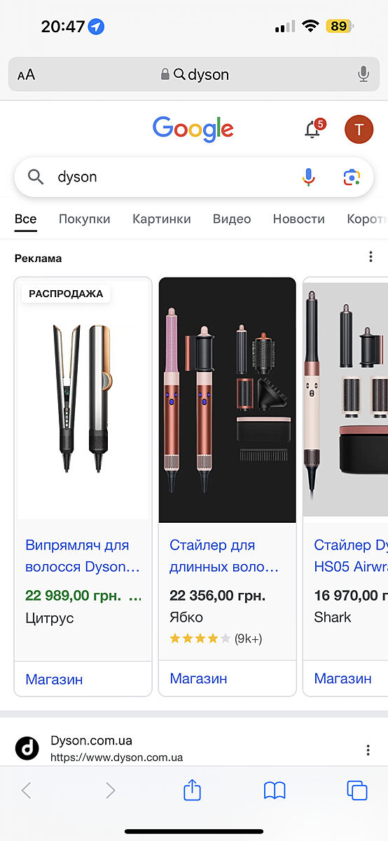 Видимо, в Украине другие дайсоны...Или другой Гугл
