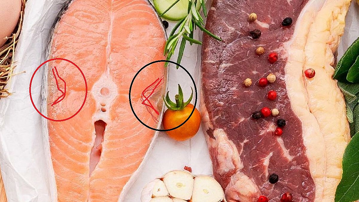У риб два основних типа мязів: швидкі та повільні. Красива рожева частина - це швидкі мязи, які риба використовує для різких швидких рухів, а коричневаото- сірий тип мязів - це повільні мязи для тривалого пересування у звичайному темпі. По суті це одні і ті ж мязи, обидва можні істи. Просто хтось любить, а хтось ні)) Я доречи читала, що вони смакують набагато краще якщо їх жарити, а не солити.