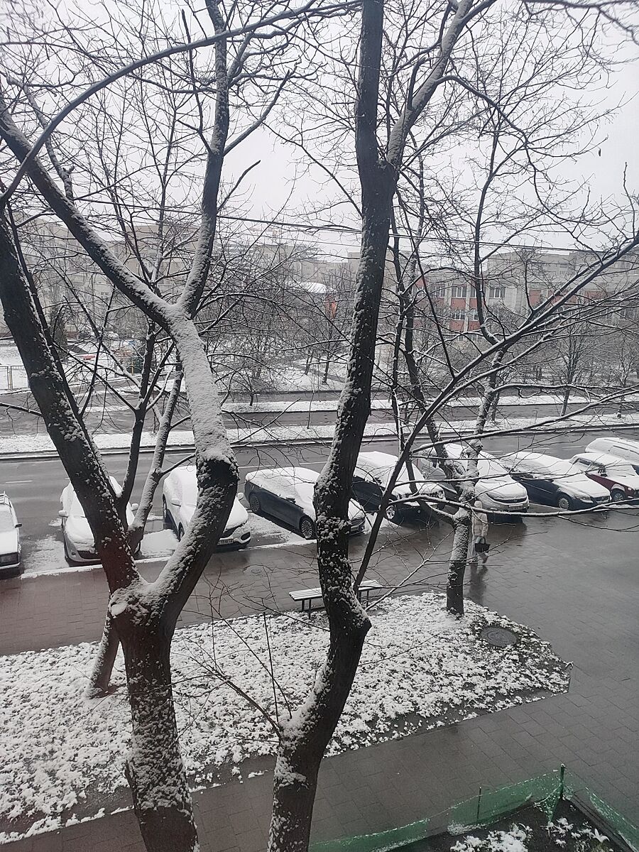 Снігу намело невеликий шар. Але вже не падає. Проте свище так, що аж моторошно( І холодно. Кропивницький.