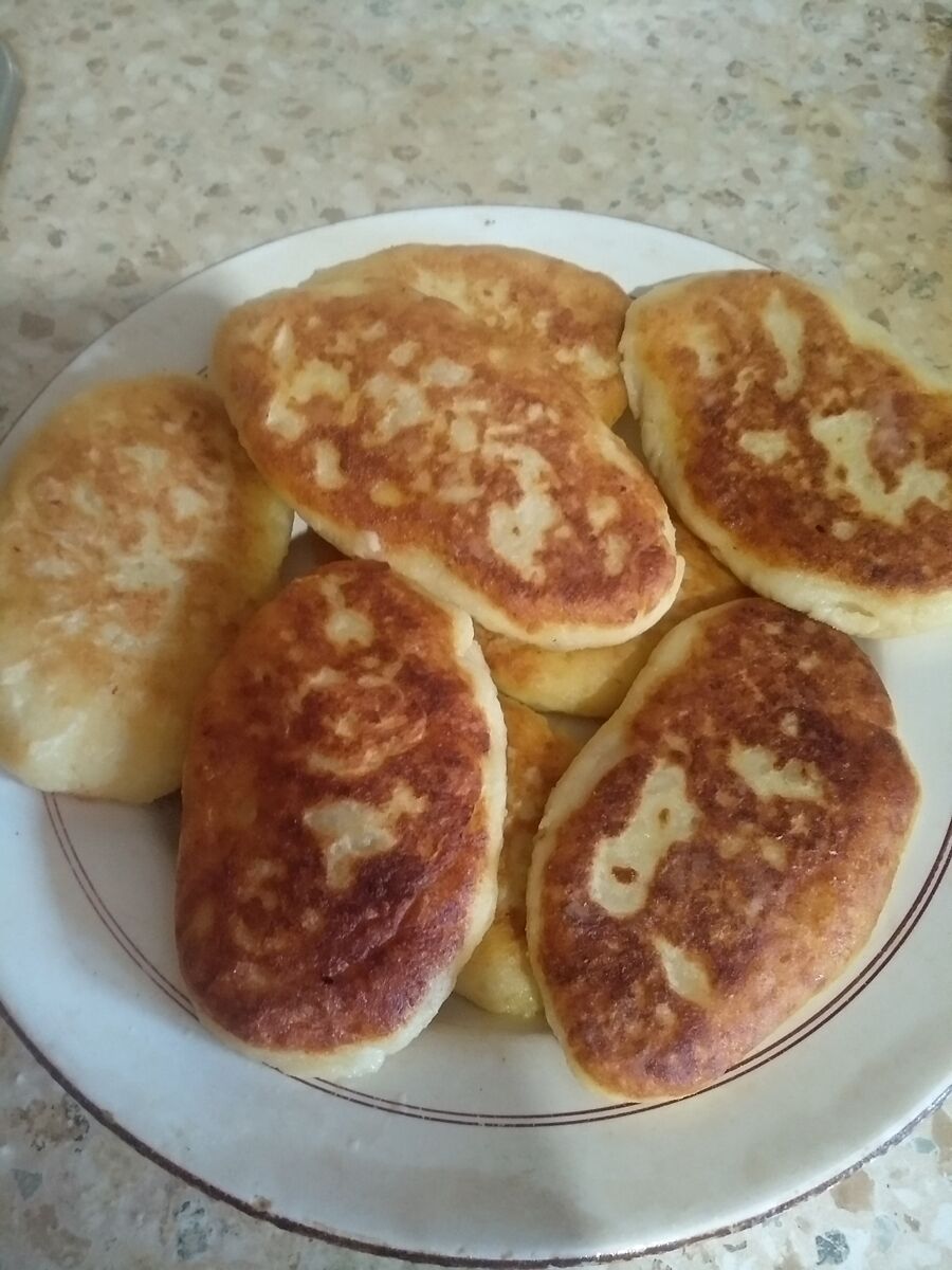 Картоплю зварти в мундрі,охолоне,перекрутити на мясорубці,+яйце+мука,+сіль.Начинка тушена капуста.