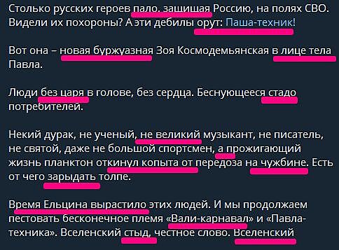 ⚰️В Москве хоронят какого-то рэпера-наркомана «Пашу Техника», откинувшегося от передоза. Само по себе событие пустяковое, мы бы на это не обратили внимание, если бы на похороны не пришли СОТНИ ТЫСЯЧ людей. Лучше бы они, конечно, вышли против Хуйла и войны, но Z-патриоты возмущены что на похороны ’героев СВО’ приходят единицы, а на похороны наркомана пришла большая толпа. Это какой-то позор!Очевидцы говорят,что 80 проц народа приперлось под дозой