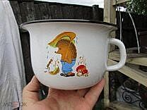 У бабушки был такой эмалированный. А дома помню розовый пластиковый, но у меня младшая сестра есть , не помню точно это от меня ей перешел или ей покупали .