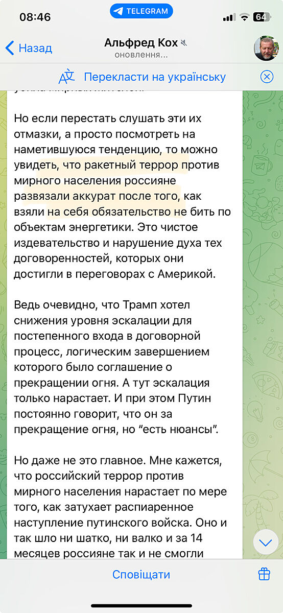Я не пойду воевать, потому что я против войны, я за мирные переговоры и за любые уступки, лишь бы сохранить остатки людей и страны.