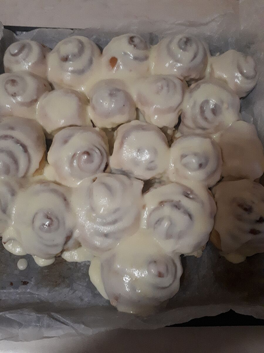 Делаю сама синабоны, люблю по оригинальному рецепту, в заливке обязательно маскарпоне и сливки. Из всего покупного магазинного, приближенный к оригиналу вкус, только в Новусе.