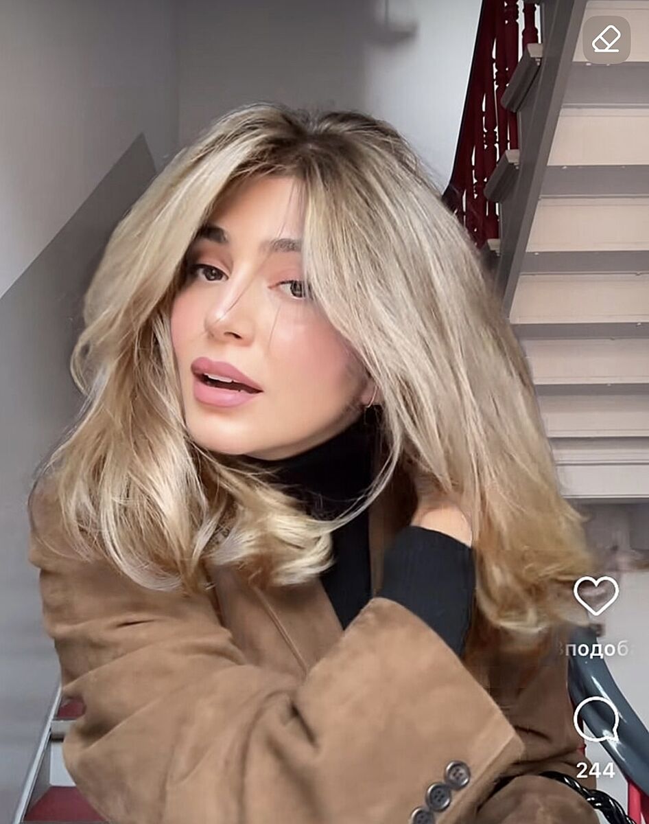Такая стильная, яркая. Очень нравится. Всегда укладывает волосы и стильная, без вычурности. Использует свой молодой возраст по максимуму, любит себя
