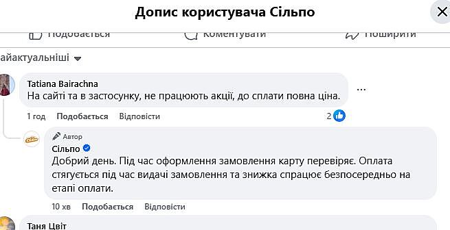 написали що спрацьовує знижка в момент оплати, я щось не вірю, а якщо немає товару, минулого разу так не було, спрацьовувало в кошику