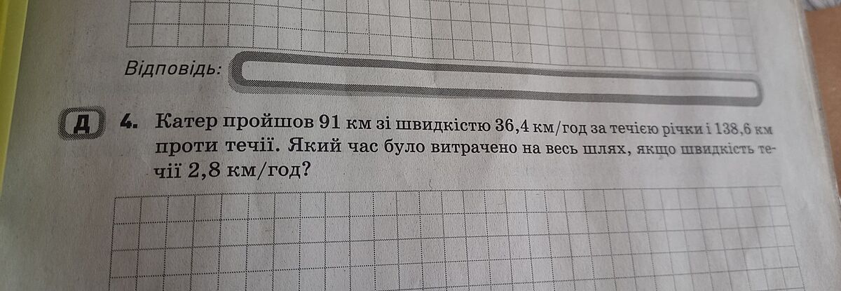 Да, вже згадала про власну швидкість катера. Щось не те з умовою