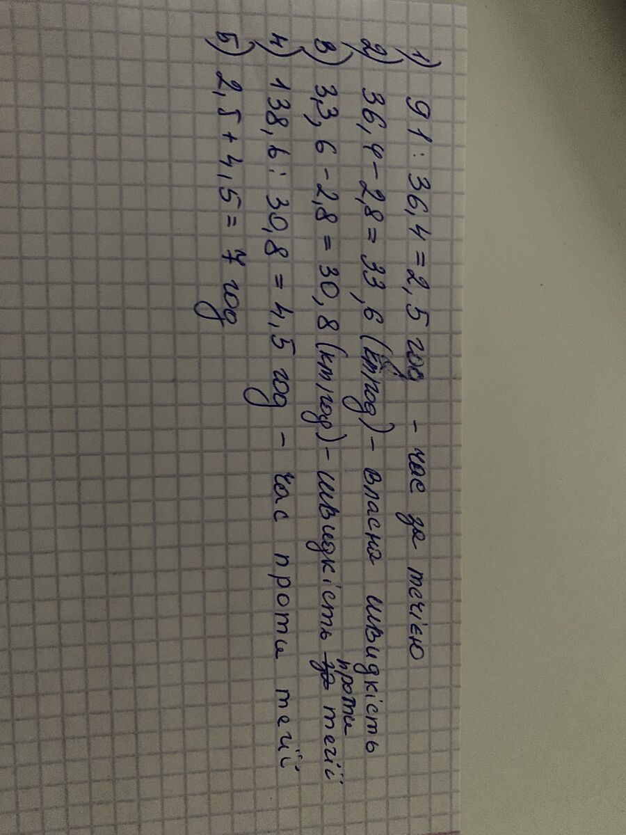 І від неї ще потрібно відняти 2,8, щоб знайти швидкість проти течії