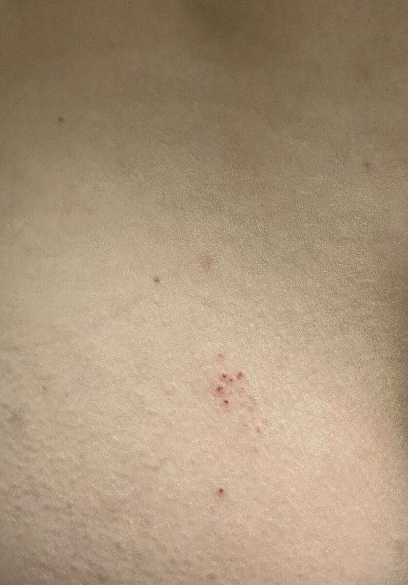 Девочки, на что похожа эта сыпь? На пояснице. Похоже на засос, но эти точки словно с корочками. Не чешется, но немного неприятно когда трогаешь