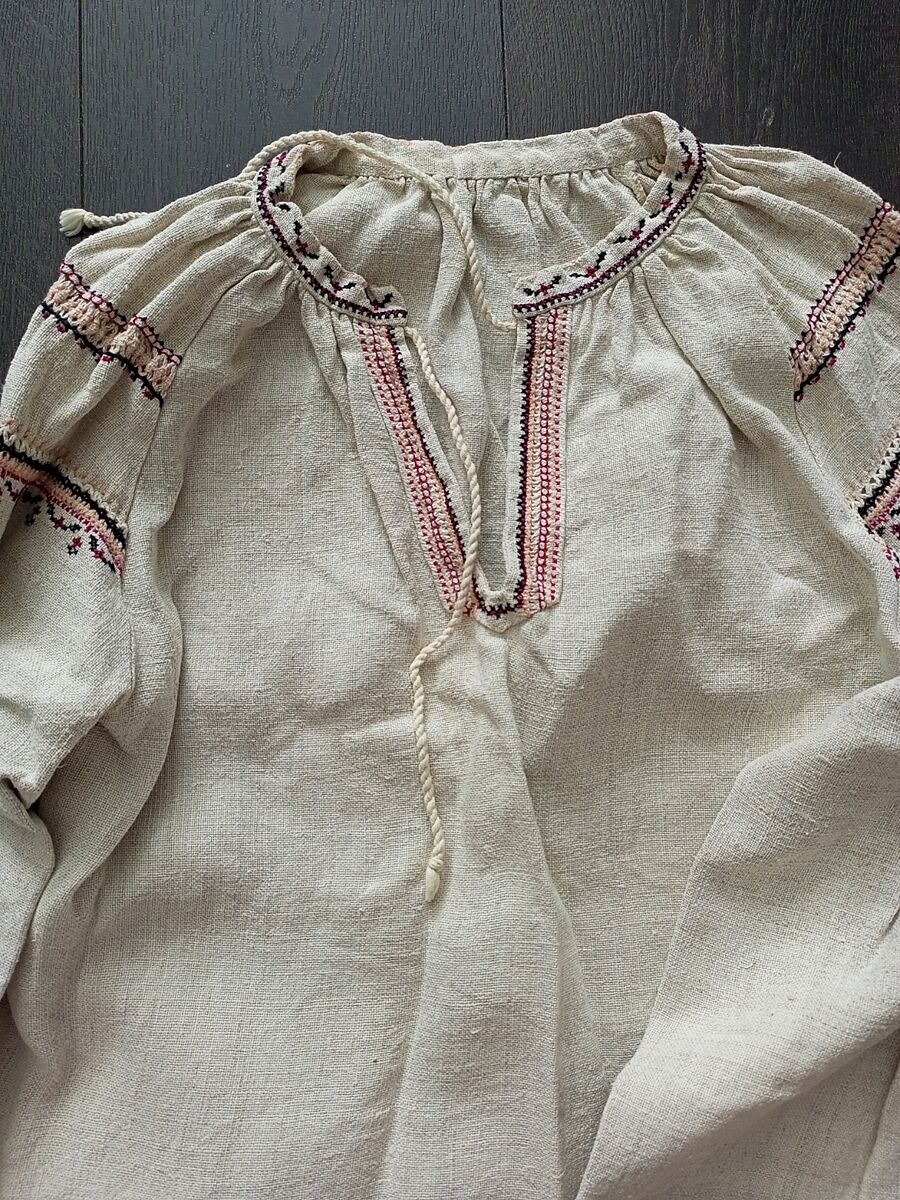 В мене є від моєї прабабусі...типу вишиванка, вона ’рукава’ називала, довжина за груди. З самотканого тоненького полотна. Іще вартух святковий