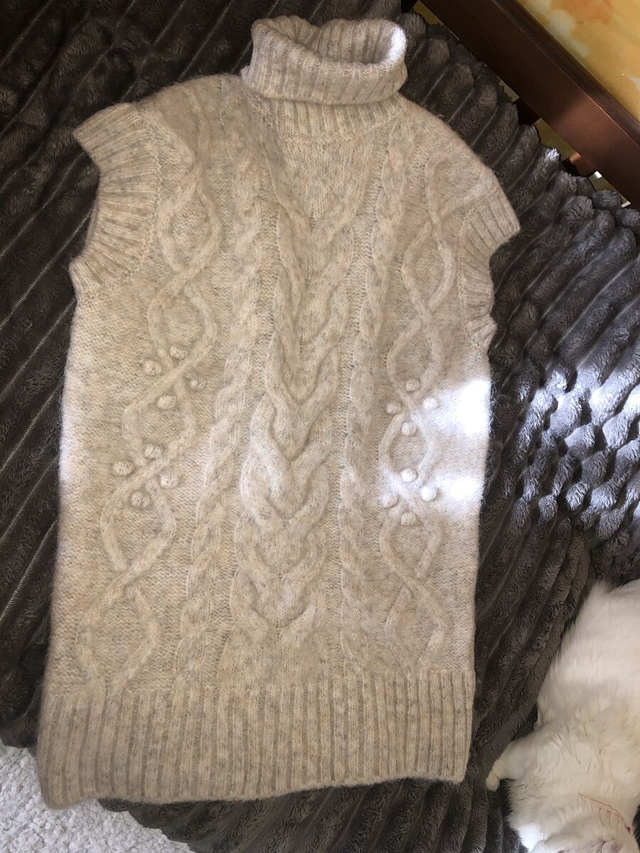 А мне нравится! Уверена состав отличный, теплая, качественная вещь. С черными брюками и водолазкой, можно с юбкой- карандаш и черной рубашкой, как вариант.