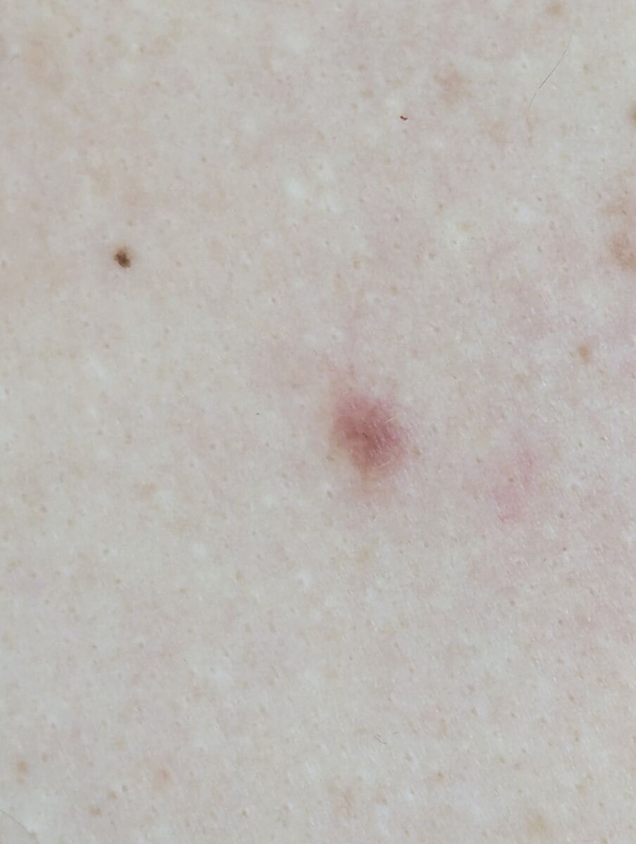 Або ще варіант що під родимкою вискочив маленький прищик. Ще подивлюсь за нею, і попрошу після свят піти до дерматолога, най подивиться дерматоскопом.