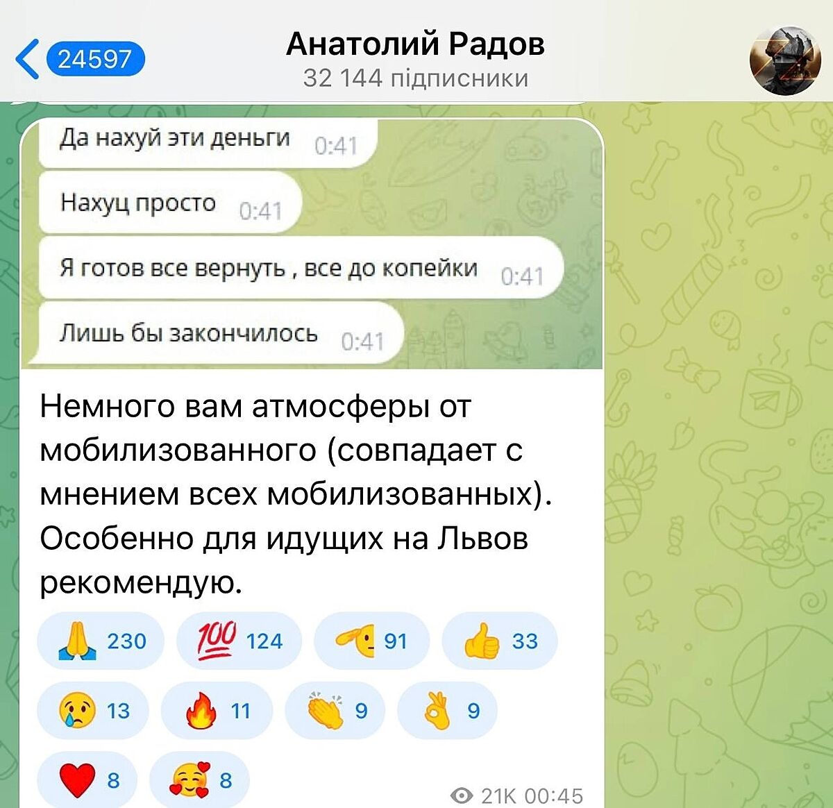 ⚡Z-патриот воин второй армии мира Радов пишет о настроениях в российской армии. Некоторым уже и денег не надо, лишь бы только закончилась мясорубка.