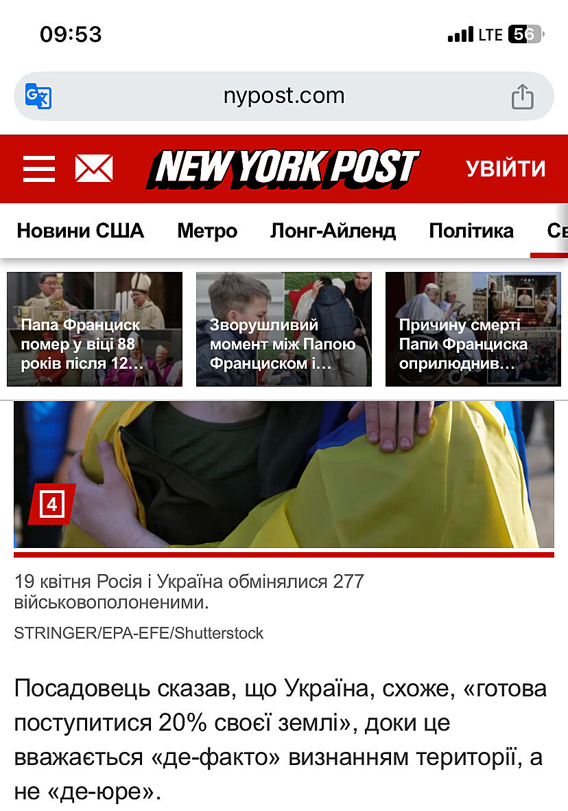 ❗️Україна, схоже, готова віддати рф 20% своєї землі, доки це вважається «де-факто» визнанням, а не «де-юре», – NYP.