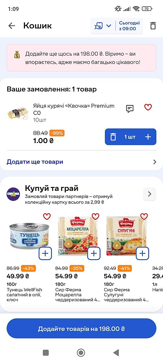 Правда можно набирать так чтобы в итоге на кассе забрать только яйца за 1грн, от другого отказаться