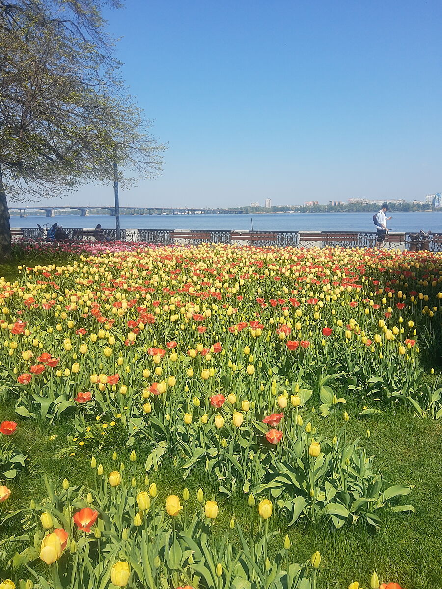 Вчора була на набережній біля фестивального причалу Дніпро. Там поля тюльпанів. Де ще подивитись на красу в Дніпрі Викладайте фото з інших міст і присадибних ділянок. Хто знає назви сортів підписуйте.