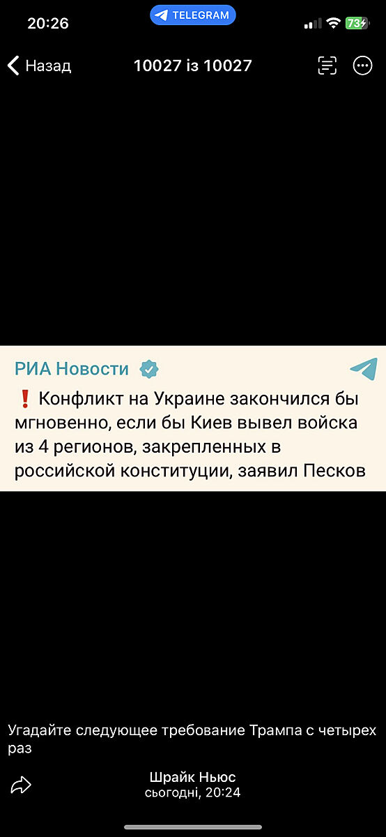 вище Клементина розписала план ,як можна признавати ті вимоги путіна ( вчора ротом пєскова озвучені) , але це відкинеться деякими, бо все ж просто, Трампу теж вважалося так просто, в реальності 100 днів, а тільки гірше.