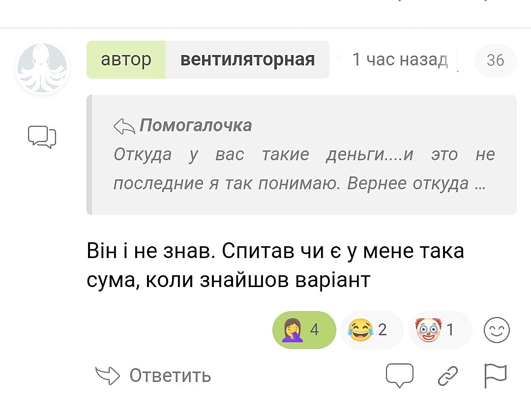 От цікаво буде почитати коментарі в темі, де чоловік відмовляється віддати гроші щоб врятувати дружину або її близьких. Мотивуючи це тим, що гроші останні а у них діти і треба в першу чергу думати про них) або як варіант ’я вивезла дитину за кордон, дім в окупації, треба гроші мені на операцію. А він такий ’мій член тебе три роки не бачив’. Створю щось таке обов´язково. Почитаємо глас народу