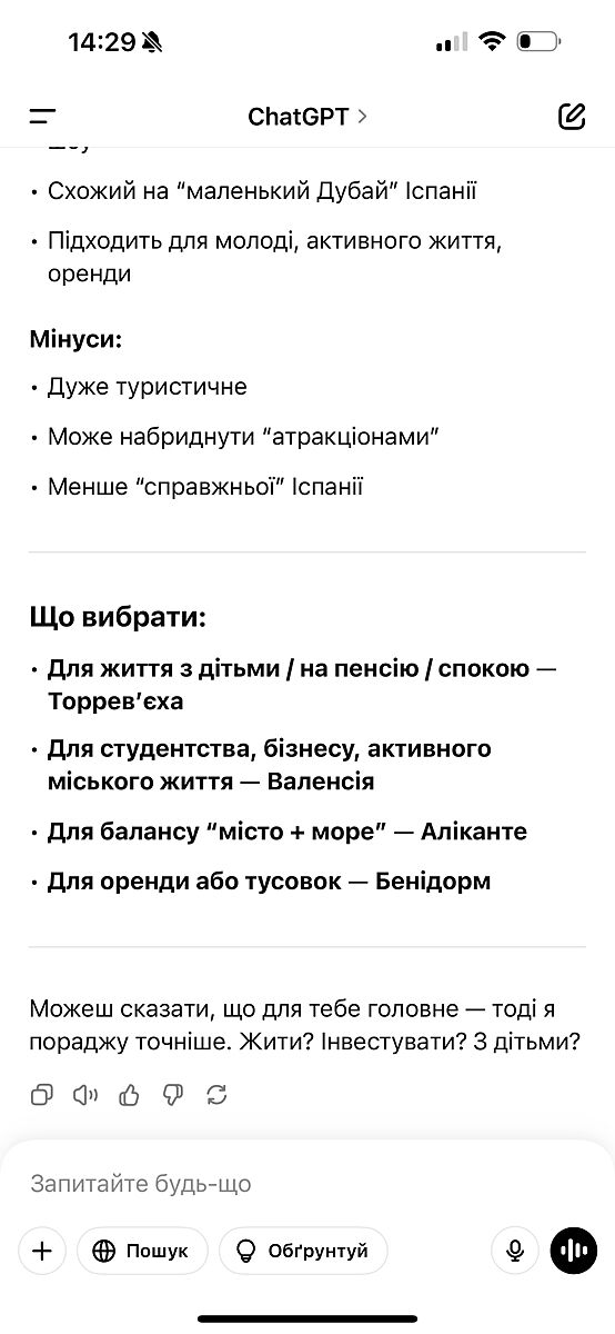 Тороевьеха-это «дыра»,ничего там хорошего нет ,море никакое именно в там,грязь,вонь,африканская барахолка на набережной,единственный плюс -нет языкового барьера,вокруг много русско/украиноязычных.В Бенидорм жить бы не хотела,погулять да.Из перечисленных мест нравится Валенсия и небольшие города рядом.