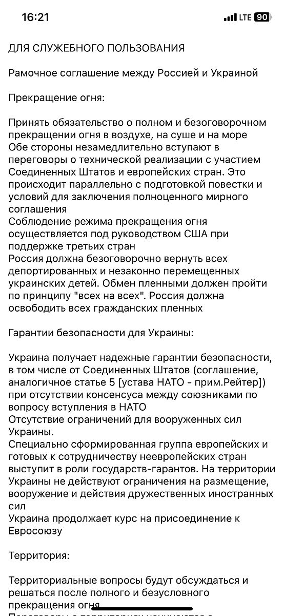 Ви написали один, Віткоффа з Парижу, є інший, від Ес+ Україна . І там є відмінності. Саме цей план ще мають з пуйлом говорити.