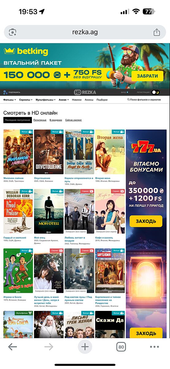 Якісь заблоковані, якісь ні. Знайти фільм - не проблема
