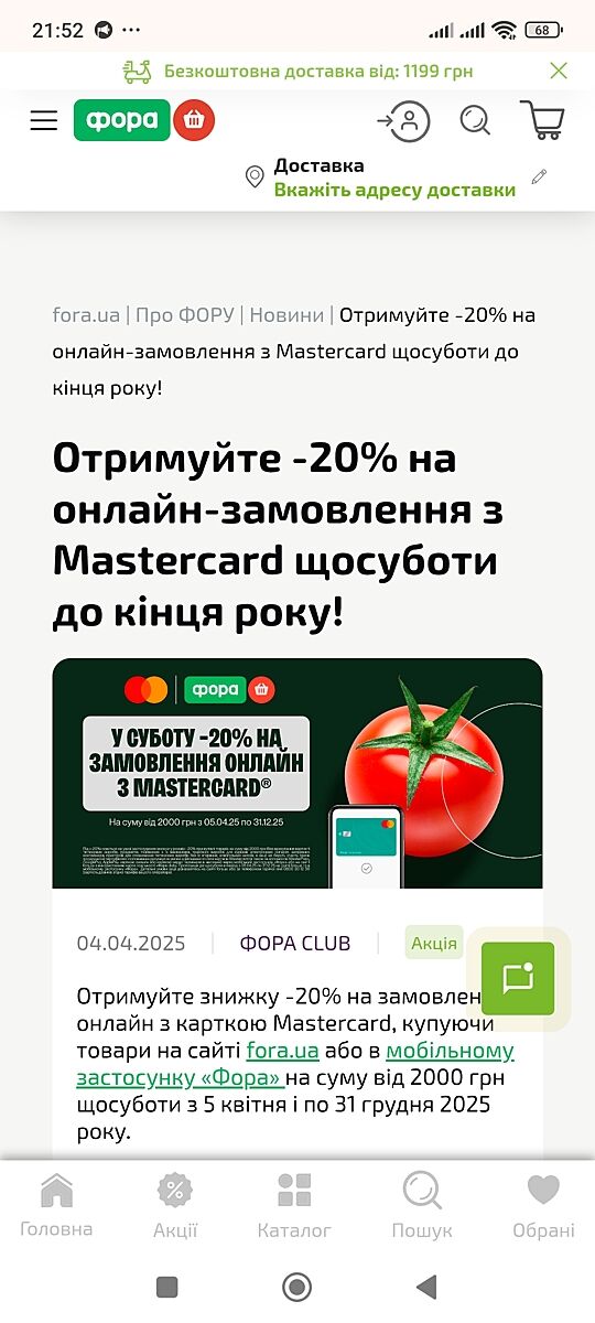 -20%на доставку от Формы в СБ при оплате Мастер кард)