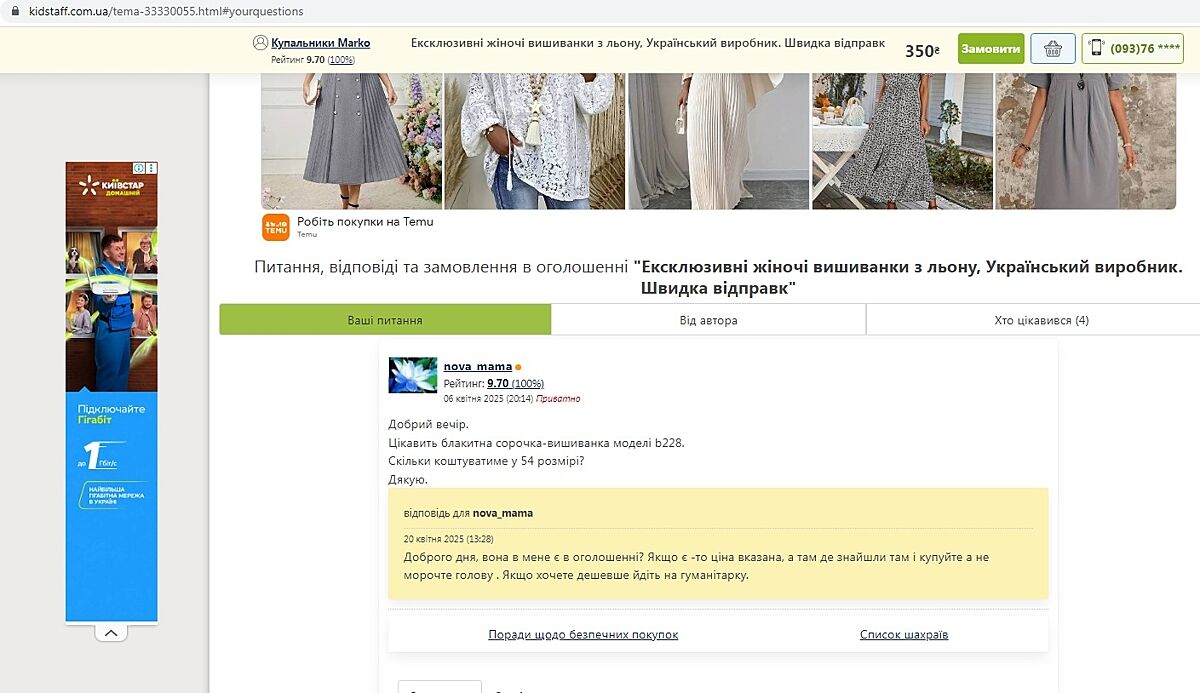 Пройшло два тижні з моменту запитання. Ясна річ, я вже купила у нормального продавця собі вишиванку.