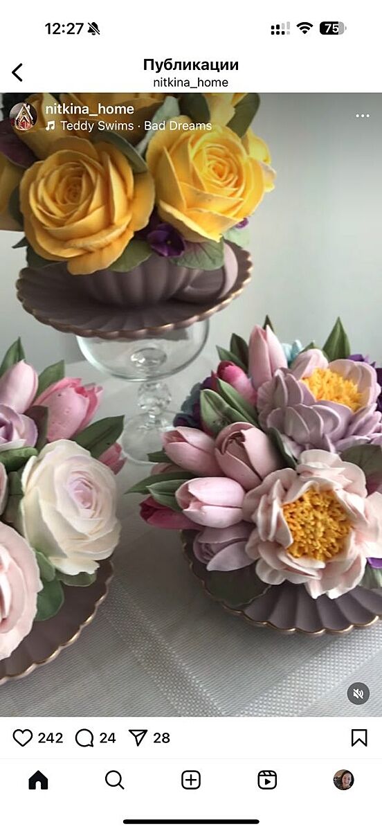 Можна оригінально підійти до питання. Живі квіти то звісно, гарно, але чи запамʼятає... Я в інстаграм дивлюся на ось такі роботи з шоколаду і зефіру - виглядає гарно, незвично і можна зʼїсти, нажаль, в нас за кордоном не розуміють такого, тому дивлюся дистанційно на гарні роботи. Є чашки, а ще дівчата роблять букети - виглядає шикарно. Я не заблюрювала виробника, можна побачити її роботи. Ця дівчина з Харкова, якщо не помиляюся, але я бачила, що дівчата з Києва і інших міст роблять таку саму красу. Можливо, вам сподобається.
