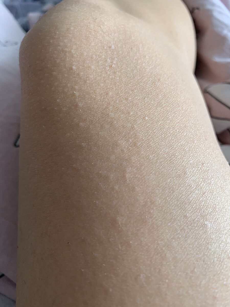 У мене щось такееее із шкірою…на ногах. На стегнах - ділянка з гострий прищів (чи не пришів- це тупо гострі бугорки). Ну і ляшки всі то тут то там у такому, но на ляшках там є вміст - тоненька палочка🤦♀️🤦♀️🤦♀️, вибачте. Болюче. Краще не дерти - бо воно потім набрякає, а як спале - толку немає. Все одно бугорець є. Все колюче, не гладке. Що відбувається. Ну а де +- гладенько, там просто якщо трохи розтягнути шкіру - то червоне трохи. Пора типу така. Що робити. Хочете, покажу, втрачати вже нічого😂😂