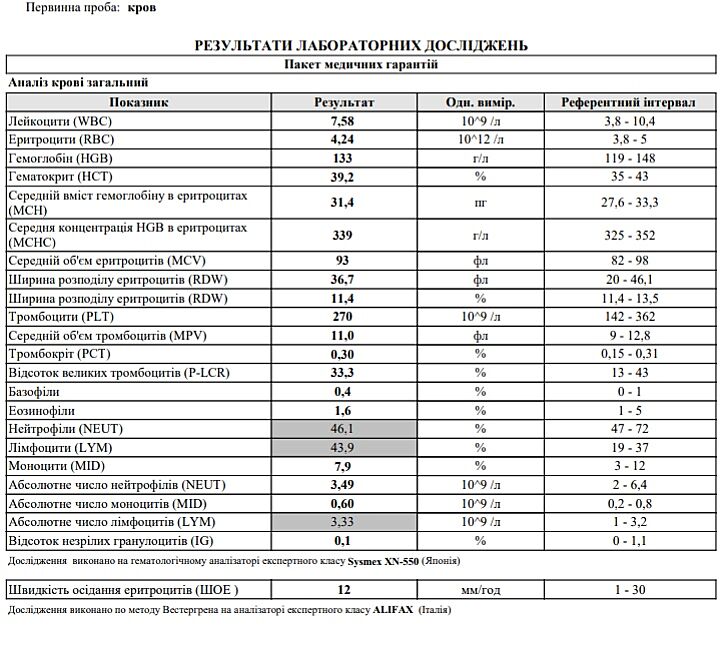Так де хвороба крові? У вас майже ідеальний аналіз же.