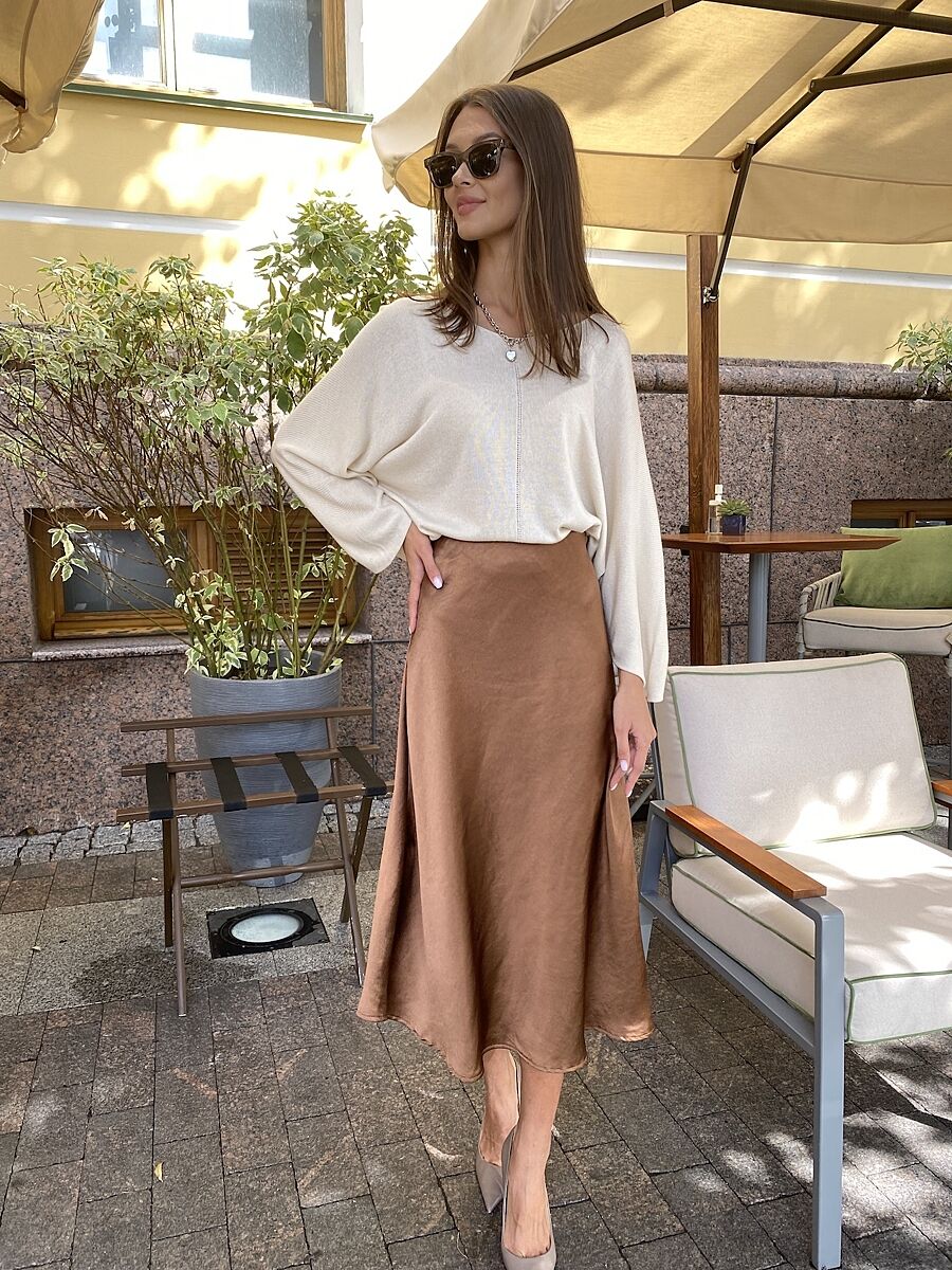Взагалі то і на тій фотці спідниця на ній сидить як на верблюді сідло, ще й блузку не розправила. Там ще й тканина на блузочна, а не на спідницю. Ретушер там мабуть посивів, поки якось її вичистив. Шовкова спідниця-півсонце ніколи і ні на кому не сидить добре, навіть на скелеті. Заспокойтесь.
