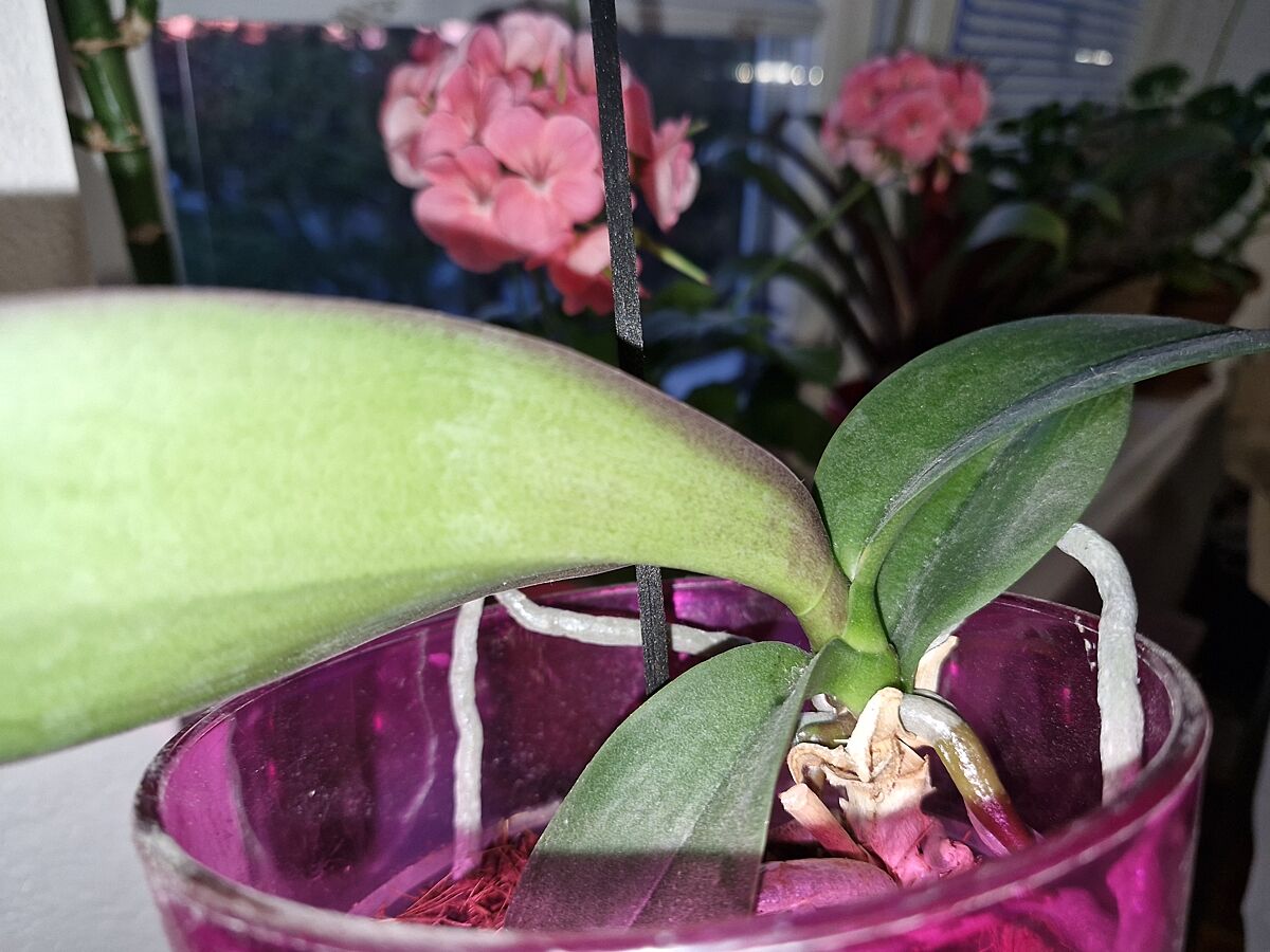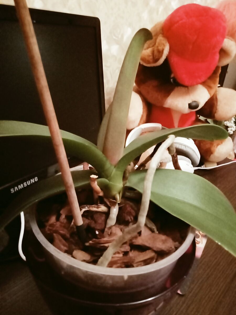 Полтора года назад, с мусорки подобрала орхидею. У которой практически не было корней, было 2 вялых листика. Выходила. Орхидея в благодарность, через несколько месяцев выпустила стрелку с цветами, но получилось 2 цветка, остальные бутоны усохли в зародышах. Потом стрелка эта засохла, я обрезала. Орхидея нарастила листики. Прошло полтора года. Корни хорошие, лезут быстро. Но, один листик пожух, а второй с пятнами. Никаких намёков на то, что будет стрелка и новые цветы когда-нибудь - нету. Кормила ампулах для орхидей( название не помню). Что с ней делать? Чего не хватает? Чтоб вы посоветовали?