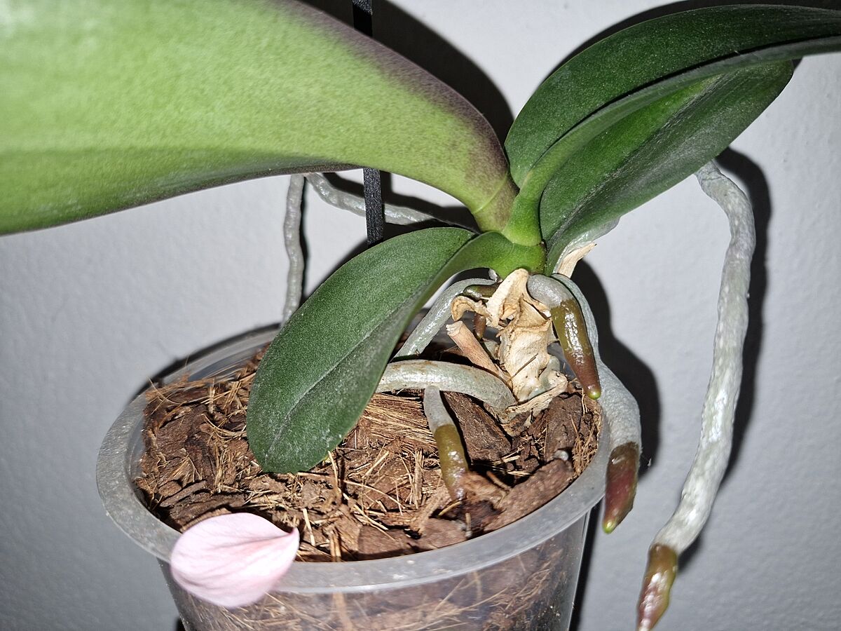 Мне кажется, она суховата у вас. Корни сухие. Горшок лёгкий? И ей бы нарастить хорошую корневую систему и листья.
