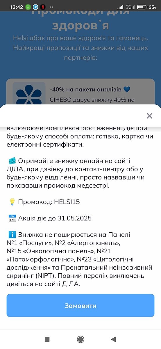 Тобто якщо я завтра йду здавати аналізи то цей промокод дасть мені зн жек 15%, чи він одноразовий?