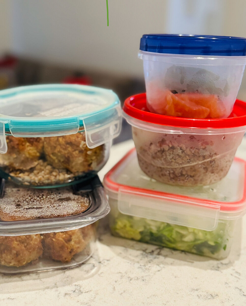 В мене рис, куряча грудка, салат з тунцем, овочевий салат